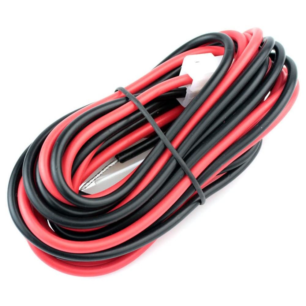 Câbles de câble CC pour la plupart des règles VHF (Kenwood, ICom, Yaesu) avec des connecteurs Molex 2-Pin (en t). Côté oborn (rouge / noir) équipé du fusible. Longueur du câble Env. 4m, 2,5 mm², pas de connecteur de l'autre côté. {