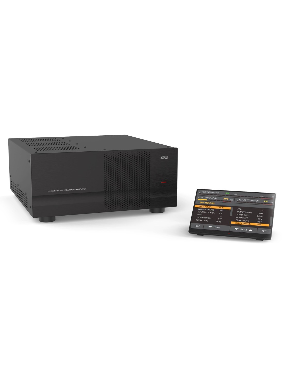 L'amplificateur HF à semi-conducteurs Acom 1400 1,8-54 Mhz 1 200 watts est basé sur la dernière technologie de transistor LDMOS. L'étage final PA utilise un transistor LDMOS 65 V robuste pour les modes de fonctionnement intensifs. L'amplificateur est équipé en standard d'une interface Ethernet et peut donc être contrôlé à distance via Internet via l'interface Web intégrée.