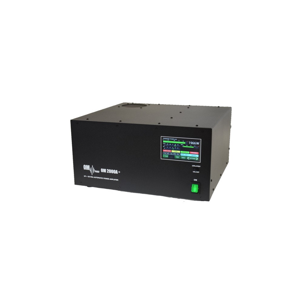 The automatic linear amplifier OM2000A + is designed for all shortwave amateur bands from 1.8 to 29 MHz (including WARC bands) + 50 MHz and all modes. It features a FU-728F ceramic tetrode.