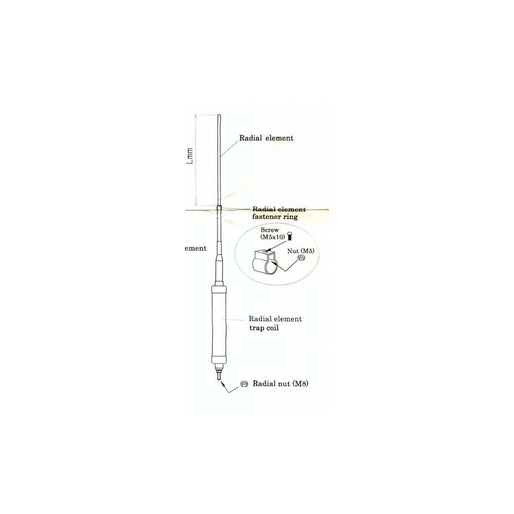 Radial de 80 mètres pour le CP-6. Il résiste à 3575 - 3650 kHz pour un meilleur ROS dans la partie CW / SSB. Remplace le radial standard. {