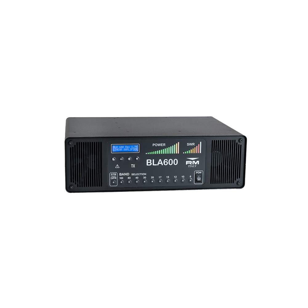 Una pantalla LC 16x2 muestra el estado operativo del amplificador, las barras LED adicionales muestran el nivel de potencia de salida. Varios circuitos de protección monitorean varios parámetros, por ejemplo, la absorción de la corriente, el voltaje, el interruptor, la temperatura, la rotación del ventilador, etc. Esto asegura que el amplificador también proteja cuando la antena funciona mal. El amplificador BLA tiene tres conectores separados para la antena que se puede asignar a diferentes bandas y que se seleccionarán automáticamente. La fuente de alimentación incorporada se puede regular a varios voltajes de entrada, lo que hace que este amplificador sea útil para uso internacional, por ejemplo, a los pedidos DX. {