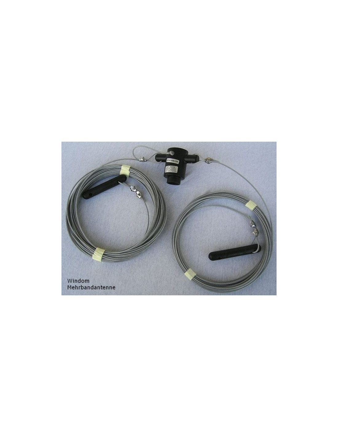 La antena Windom solo se puede utilizar para bandas que estén en armonía entre sí, es decir, para 160/80/40/20/17/12/10m. La banda más baja (más larga) está determinada por la longitud de la antena. La ROE es buena para todas las bandas; normalmente no se necesita un sintonizador. Debido a la alta impedancia del pie, se utiliza un balun 1:6 con conector PL. Construcción con alambre de acero extensible con funda de plástico transparente. Potencia de transmisión máxima permitida: 200 o 1000 W.