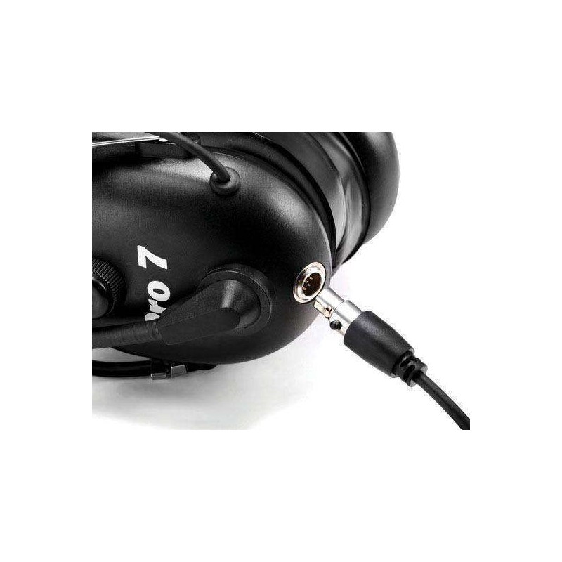 {El Pro 7 tiene un cable de conexión desmontable y está disponible tanto con la cápsula de micrófono dinámico HC-74 como con la cápsula electret para ICOM. Los micrófonos son intercambiables para que puedan usar una tapa para ambas líneas de equipos.