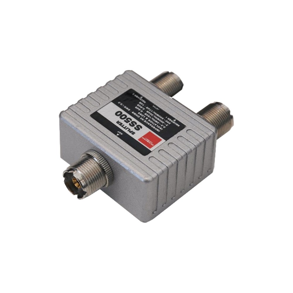 {50 Ω Impedancia, ROS mejor que 2: 1, dimensiones 80x60x30mm, 3x hembras PL PL conectores. Este divisor Notn/U & Gt; Se puede usar en la transmisión. {