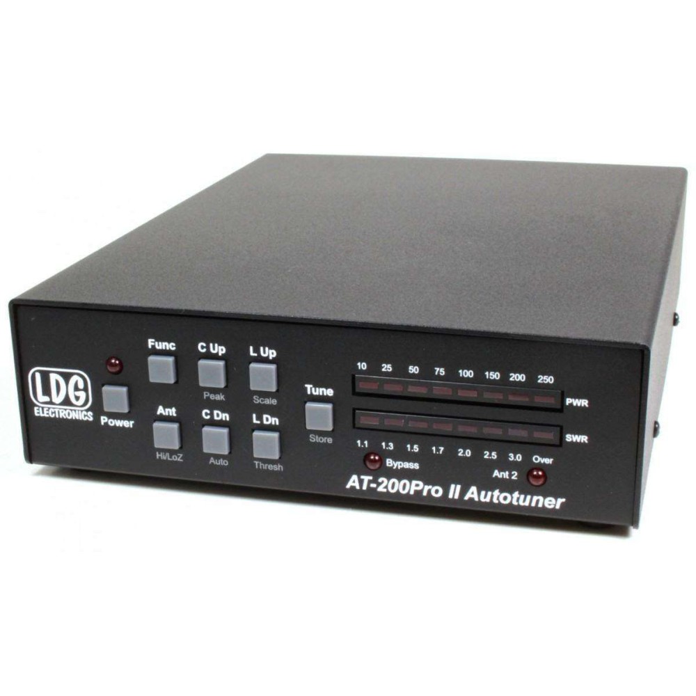 El LDG AT-100PRO2 y el AT-200PRO2 son un sintonizador de tabla que cubre las frecuencias de 1.8 a 54 MHz, y aparean automáticamente su antena muy rápidamente. Tienen un interruptor de antena de dos posición, lo que permite el cambio instantáneo de las dos antenas. El AT-100Pro2 requiere solo 1 vatio para poder operar la armonía (5W para el AT-200PRO2), pero administra hasta 125 vatios, haciéndose adecuado para cualquier cosa, desde el QRP hasta el típico transceptor de 100 vatios. El AT-200PRO2 tiene hasta 200W en HF, Máx. 100W En 6m, el poder mínimo de acuerdo es de 5W. {
