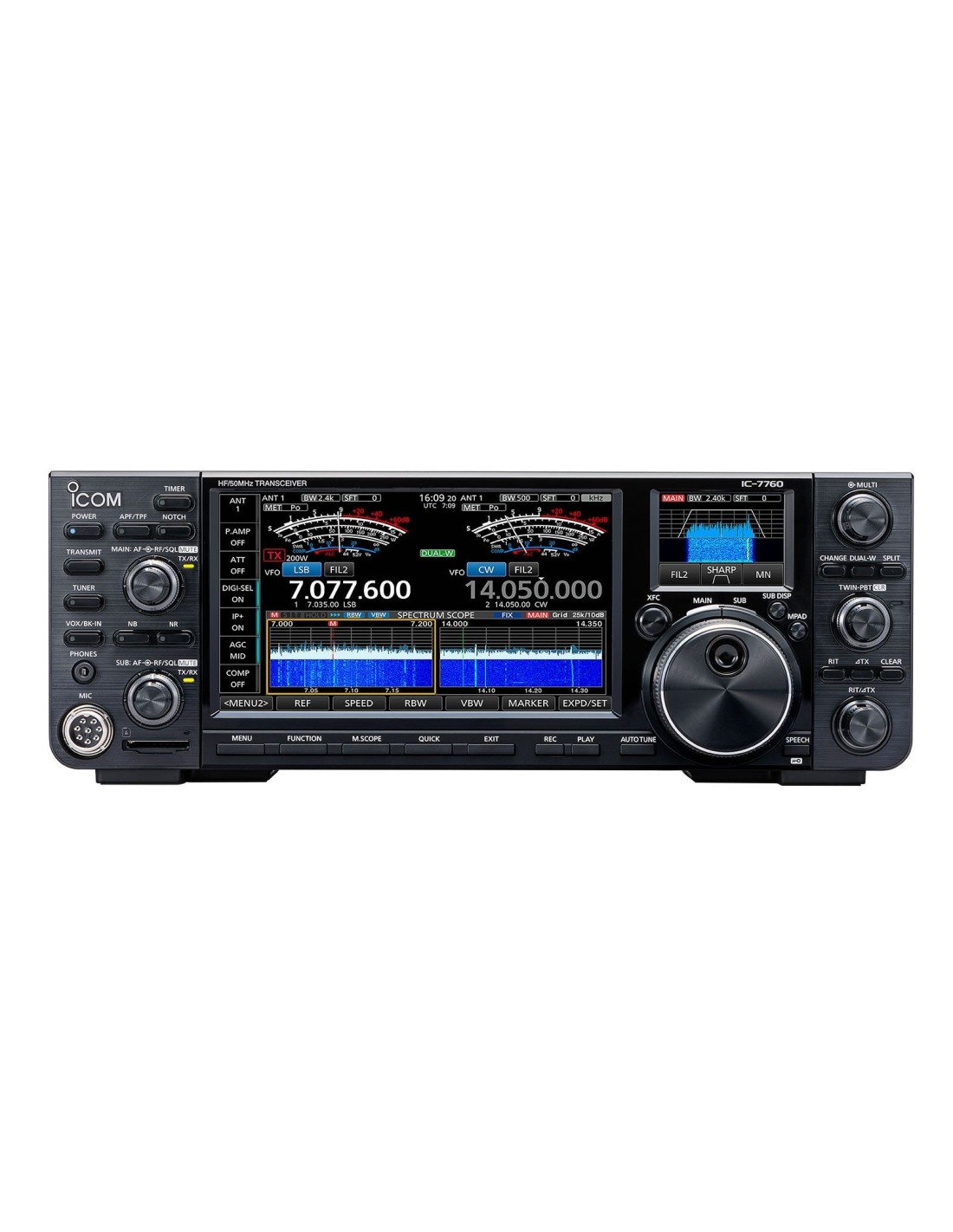 ICOM IC-7760 HF/6M SDR Transceiver de vanguardia que convence a sus tecnologías innovadoras y opciones de instalación flexibles. El dispositivo utiliza una configuración separada de la unidad de control y el puente RF (que contiene la radio real), conectada a través de un cable LAN estándar. Este diseño permite una instalación flexible, ya que el panel de control se puede colocar en cualquier lugar de la casa, siempre que haya una conexión LAN. La cubierta de RF se puede instalar en un entorno separado, como un estante o cerca de la conexión de antena. De esta manera, las interferencias debido al sonido de los ventiladores se reducen y se garantiza una disipación de calor más eficiente. {