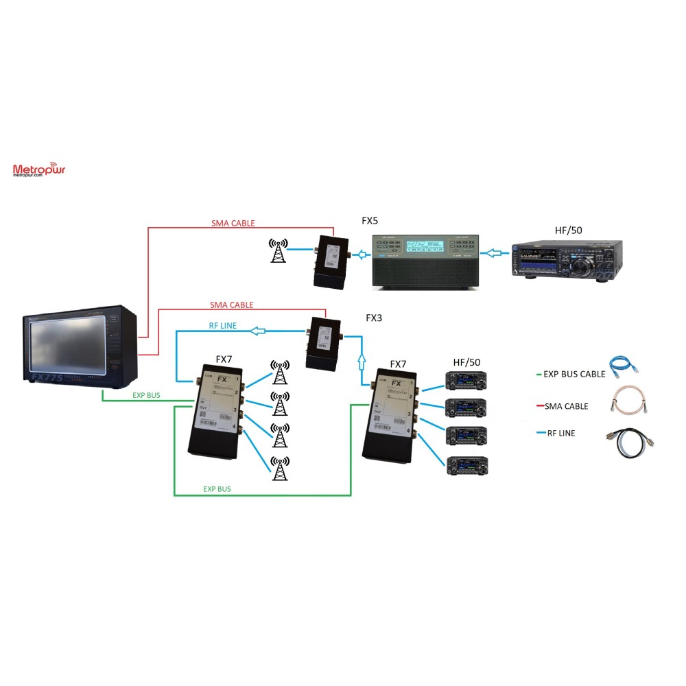 Le METROPWR FX775 est un VECTOR POWER/SWR METER moderne et entièrement numérique. Il est composé d'un wattmètre et d'un coupleur de puissance pour des mesures jusqu'à 3/5kW. Il présente un design très moderne et de très hautes performances. Il intègre un processeur rapide de 32 bits ainsi qu'un coprocesseur pour gérer toutes les mesures en temps réel et mesurer la puissance (AVG, PeP, dBm), SWR, R, Z, X et plus encore. Il dispose d'un bus externe rapide avec lequel de nombreux accessoires peuvent être connectés en série :